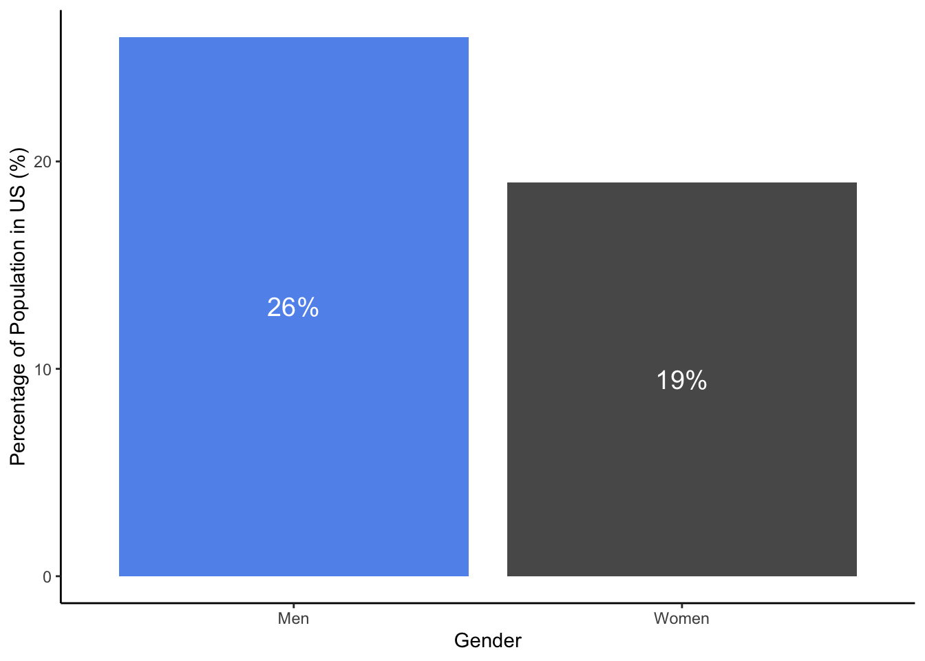 On average, 26 % of male adults reach the physical activity guidelines while only 19 % of female adults work out sufficiently. This is the similar issue recognised worldwide, where women are less active than men across most countries. Gender gap in physical activity is mainly due to concerns about stereotypes, sociocultural norms and attitudes towards physical activity since childhood.
