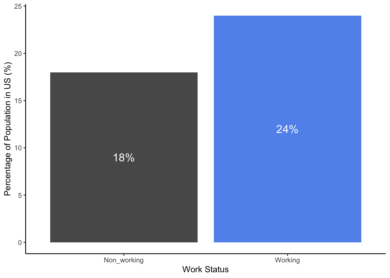 - Working adults exercises more compared to non working adults in US as shown in Table 2 and Figure 2.